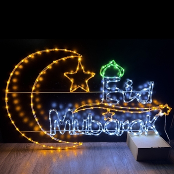 Al Aire Libre impermeable islamismo musulmán marco de acero motivo 1*0,6 M estrella Luna Ramadán Eid Mubarak Hajj al-adha cuerda decoración luces